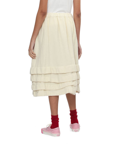 Comme Des Garçons Wool Blend Felt Tiered Skirt Ecru