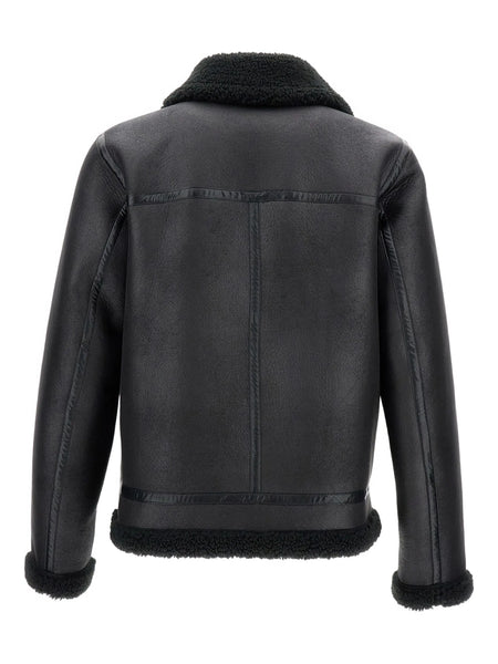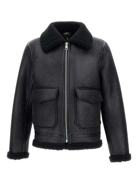 A.P.C. 'Tommy' Shearling Flap-Pocket Jacket Black