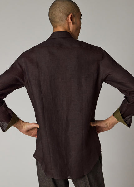 A dark brown linen shirt by Paul Smith.